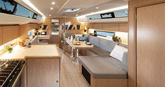 Below deck, the Bavaria C42 is bright, inviting, and cleverly designed to maximize space. Large hull windows and deck hatches create a light-filled saloon, complemented by a modern galley and ample storage. With flexible layout options offering up to three cabins and two bathrooms, it accommodates both family cruising and trips with friends in comfort. The result is a yacht that seamlessly blends performance, elegance, and practicality, making it a standout in the new generation of cruising yachts.