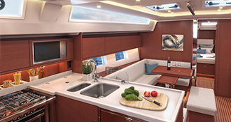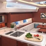 Inside, the Bavaria C45 (4-cabin version) offers a bright and comfortable living environment, tailored for families or groups of friends. Large hull windows and overhead hatches flood the saloon with natural light, creating an inviting atmosphere. The four cabins are well-proportioned, offering ample privacy and comfort, making the yacht suitable for private ownership or charter. A fully equipped galley, generous storage, and elegant finishes add to the practicality and sophistication of the interior.